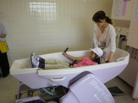 相談員による機械浴体験、これは体験なので盛り上がりました。