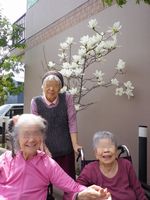 グリーンライフ伏見の玄関先と裏手にある木蓮が見事に咲きました。