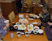 入居者のみな様は、あつあつの天ぷらが食べられると楽しみにされています。