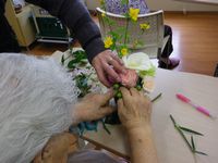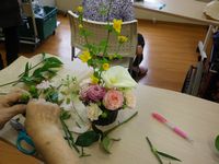 今日のアレンジメントフラワーは「山吹がとっても綺麗で可愛い~」と