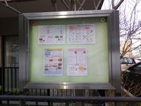 雪のため冬の間はお休みの掲示板、散歩コースに