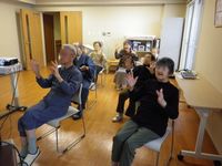 (椅子に座りながら無理なくできるので車椅子の方も安心です)