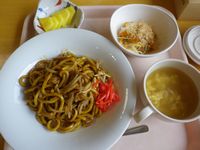 福島県浪江町の焼きそばは太めの麺が特徴で、具はモヤシと豚肉。