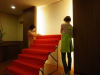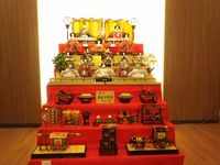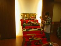 今日は、玄関入ってすぐのエントランスに雛段飾りを出しました。