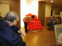 毎年飾っていますが、骨組みが・・「どうだっけ?あっそう~去年の事忘れてる~」と大笑いしながら骨組みしていると入居者の皆さまが集まり現場監督を
