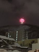 振り向くと・・雪山から『花火!』