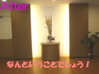 長い間エントランス正面でみな様をお出迎えしていた金色の壁紙も、そろそろ役目を終えることとなり、素敵なエントランスになるようにリフォームいたしました。