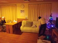 ツリーの点灯式や飾り付けをし、入居者様にも