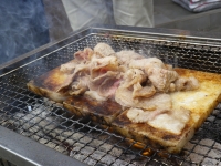 炭火の上に岩塩をのせ、その上で焼きました。