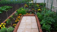 苗を植え付けしてから1ヶ月、野菜やハーブやお花たちも