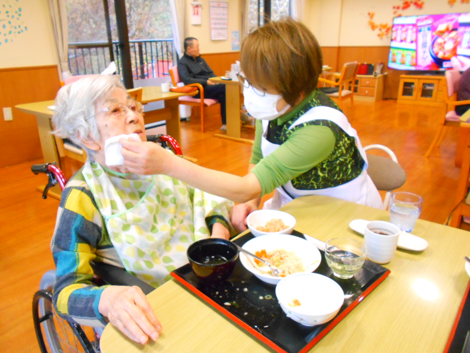 今日は土曜日で雨と寒さの中、沢山のご家族様が面会にいらっしゃいました。