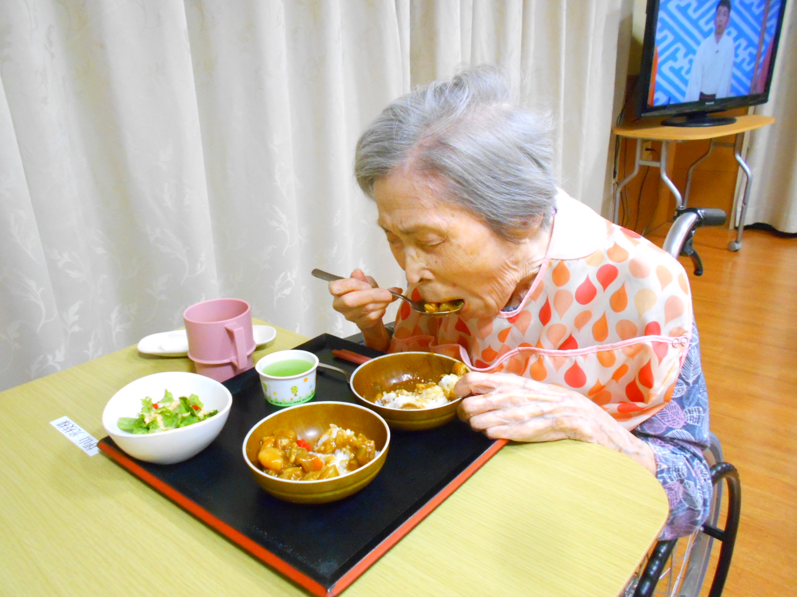 夕食にカレーライスが出ると皆さん結構食べ終わるのが早いです 笑