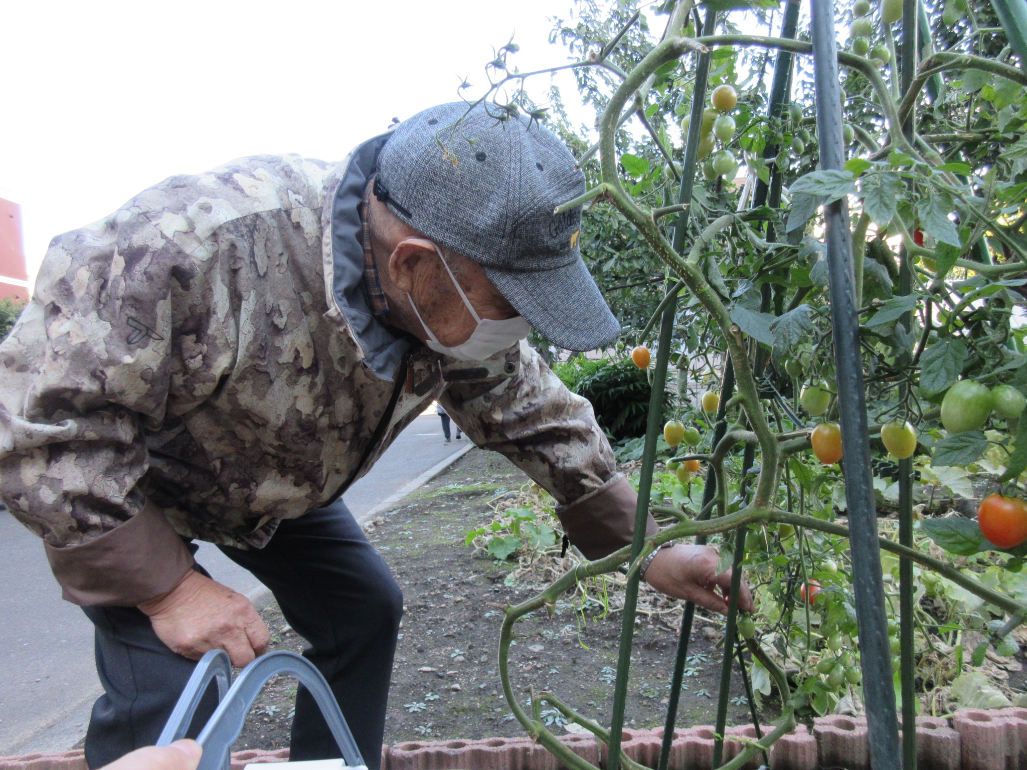 今日は午後から赤く色づいているトマトを入居者様と一緒に収穫。