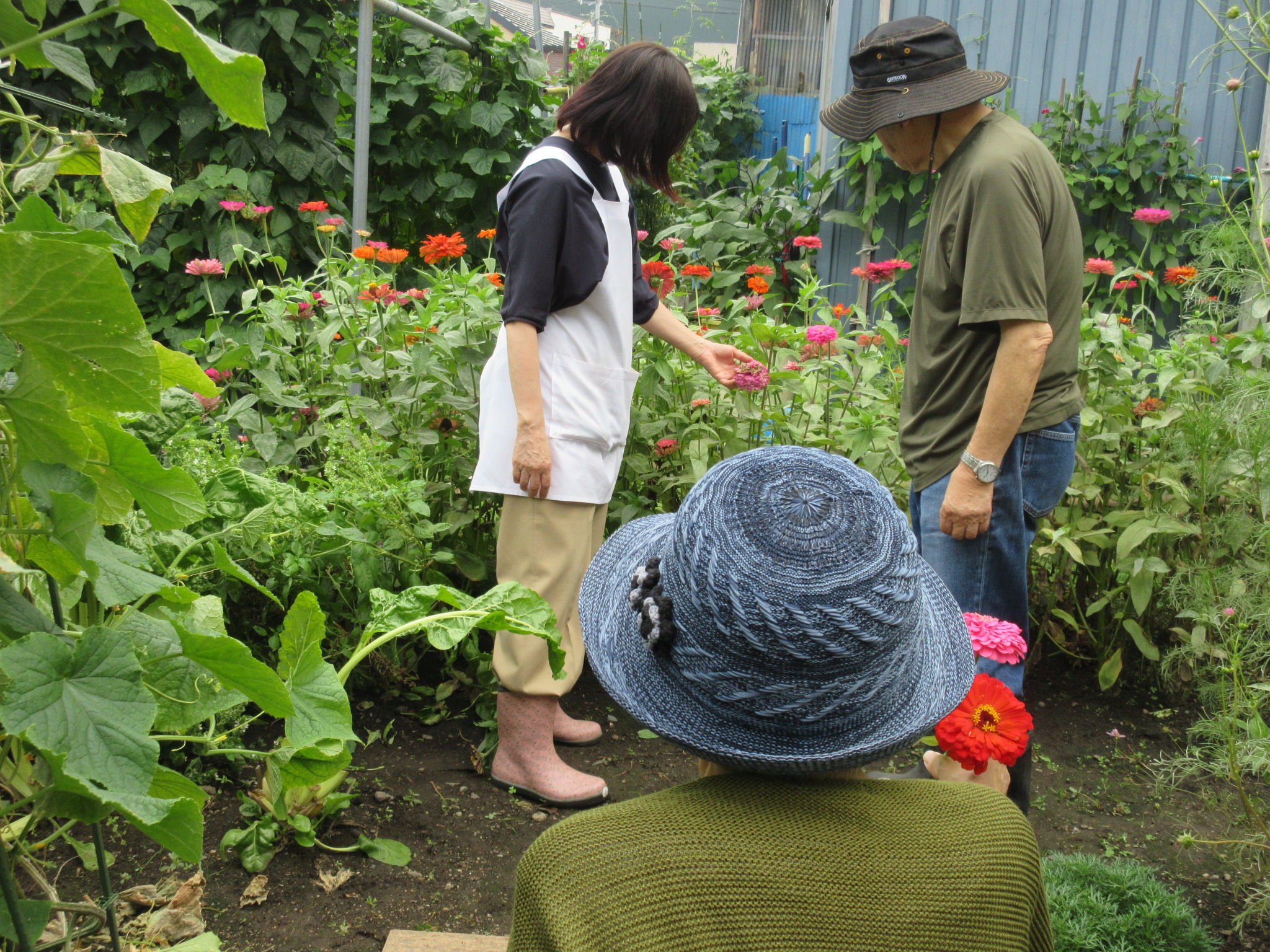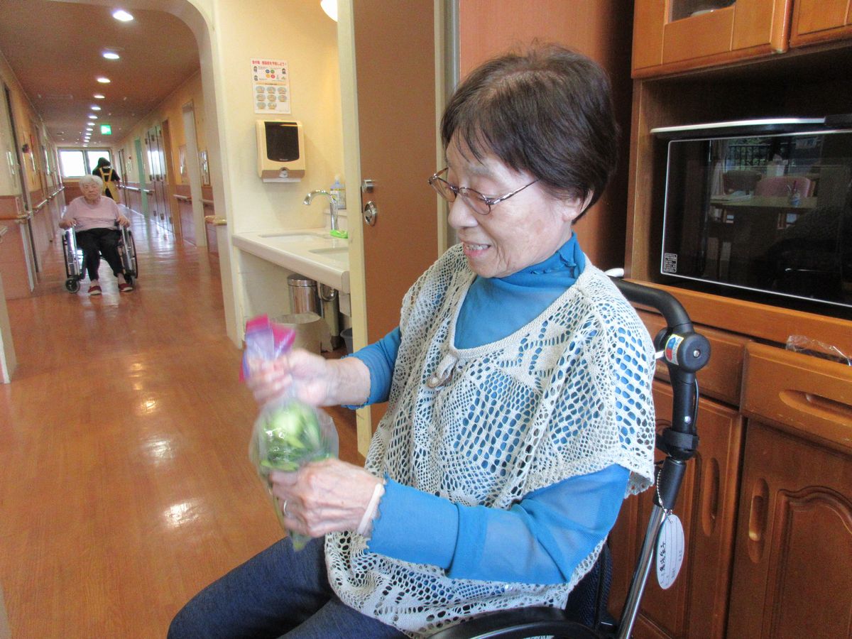 今日はご夫婦で入居されているお二人に野菜の収穫をしていただきました