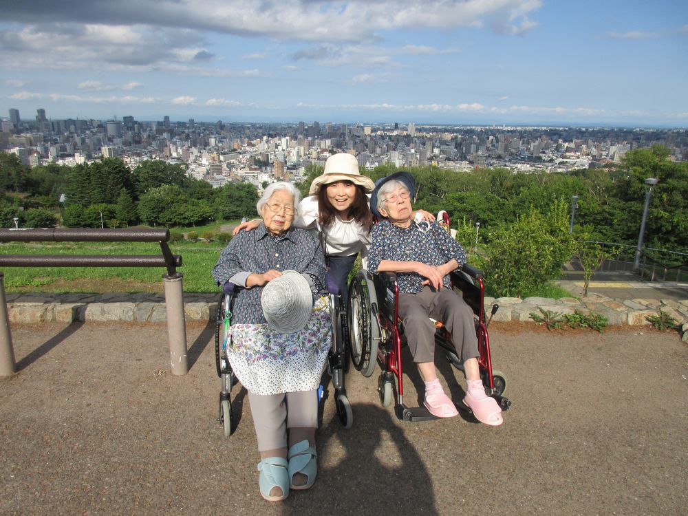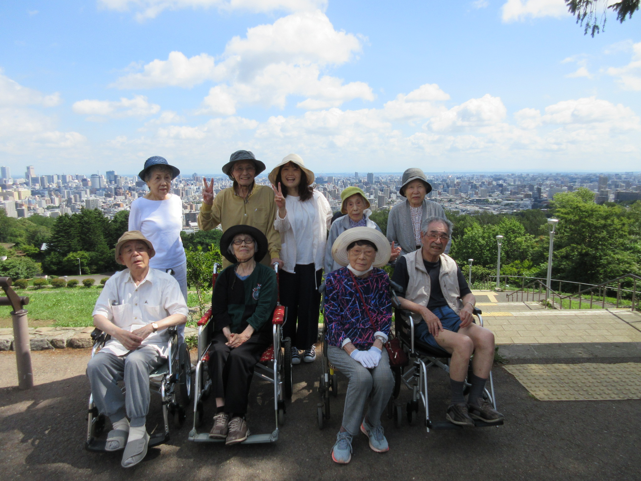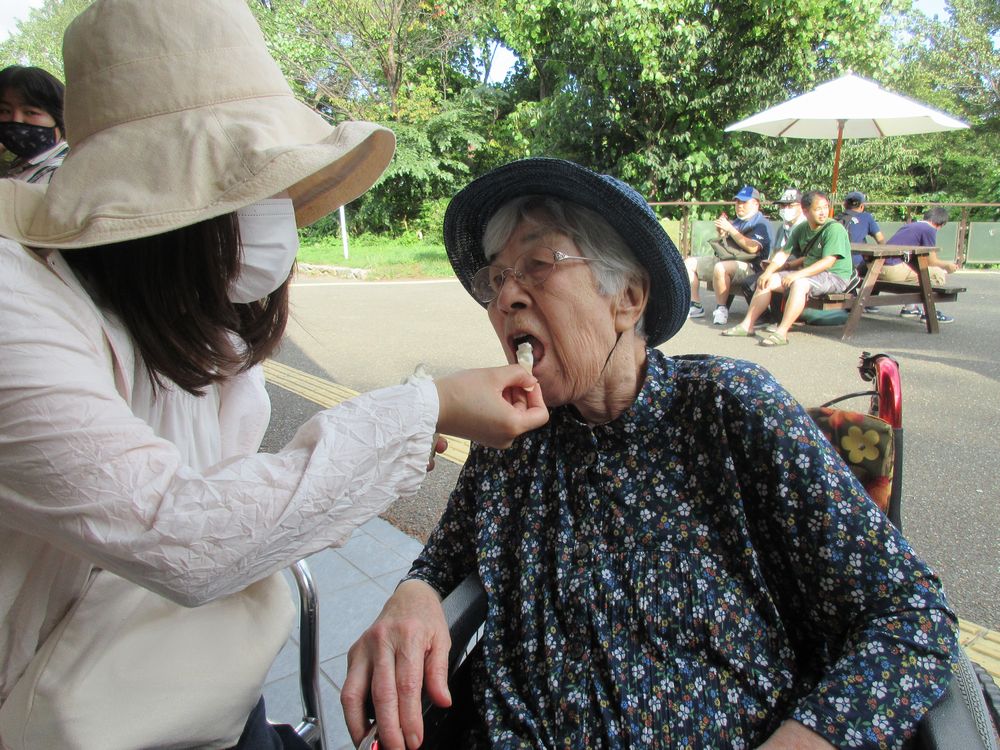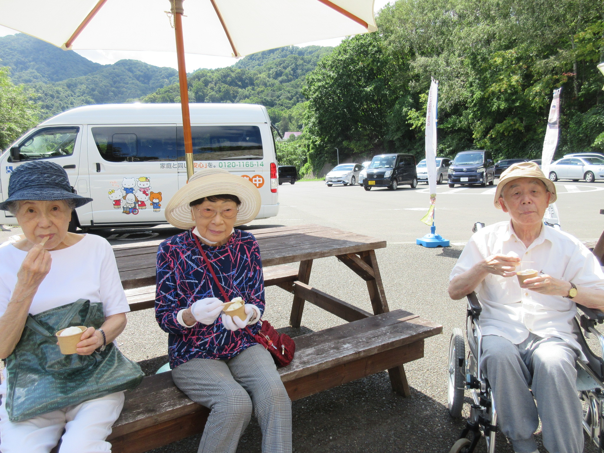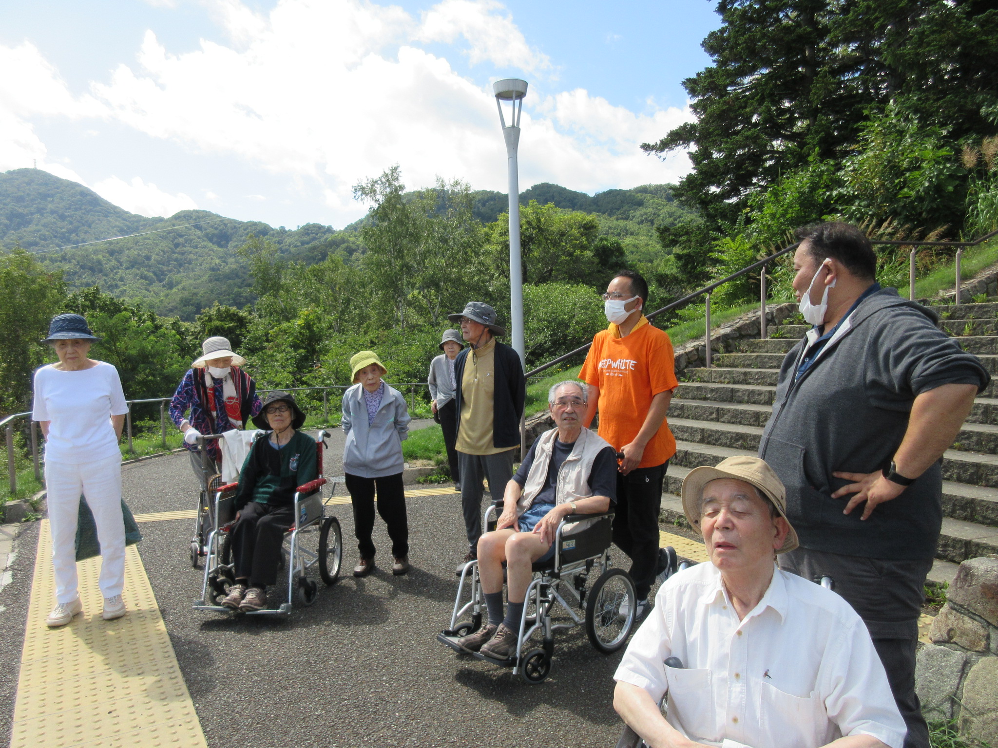 ゆっくり公園内散歩し、景色をみて楽しみ、これ何かしら・・と草木を観察されたり、みんなで写真撮って、最後にソフトクリーム食べて