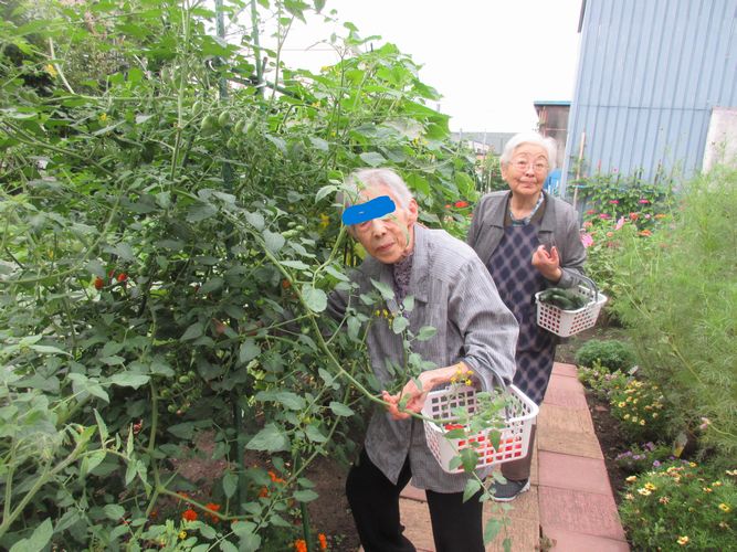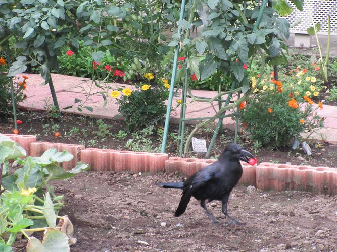「ここにありますよ」「あっちにも」「あ、ここにもっ!」と楽しく収穫している横に、人間を全く恐れず堂々とトマトを盗んでいく玄人が(笑)