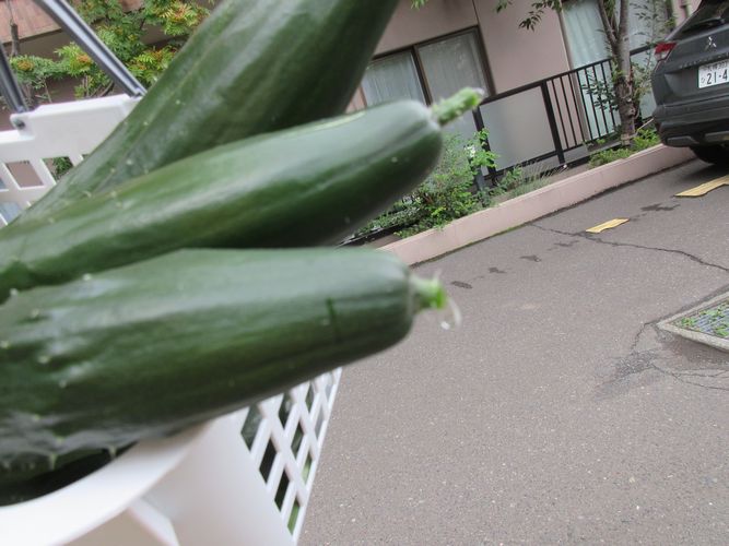 でも収穫って楽しいですね、キュウリは新鮮で汁が出てきています!