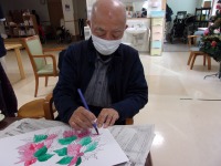 今日のレクは水彩画を行い、ポインセチアの線画に皆様上手に色をのせて素敵な水彩画に仕上がっていました!