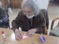 こんにちは、デイサービスです。本日のレクでは正月飾りを作ろうということで、しめ縄作りを行いました。このしめ縄はなんと全部が紙で出来ています!利用者様方も「全部紙なの?」「そうに見えない」「すごく素敵」と驚かれていました。しめ縄を作る機会は中々ないものなので皆様とても喜ばれていました。(*^_^*)