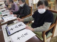 こんにちは、デイサービスです。本日は書道を行いました。今回は12月らしく「年の瀬・年越そば・除夜の鐘・12月・師走」等の見本を用意させていただきました。先日、筆も新調したので「書きやすくなったよ」ともともと上手なご利用者様の書がより良くなっていました。今年最後の書道教室だったので、飾ってある書の束をお持ち帰りする方もいらっしゃいました(*^_^*)