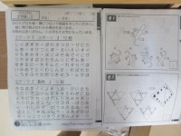 ひらがな文字探しのプリントは知っている乗り物や果物の名前がひらがなの中に紛れていますが、下から読んだり右から左に読んだりするものもあり難易度が少し高かったですが、皆さん8~9割は探せていました。