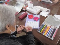 こんにちは、デイサービスです。今日はご利用者様に大好評のレク、翌月のカレンダー制作を行いました。12月といえばクリスマスの花として有名なポインセチアということで、折り紙でポインセチアを作ってみました。ちなみにポインセチアは赤いのは花ではなく葉っぱで花は中央の黄色い部分とのことです。ご利用者様に教えていただきました(^○^)花の位置やバランスを考えて糊で貼って、カレンダー部分は色鉛筆でカラフルに塗って完成です。皆さんとても嬉しそうにお互いの作品を見せ合っていらっしゃいました(*^_^*)