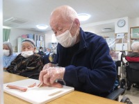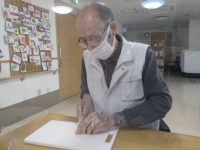 料理レクは毎回のことですが男性も積極的に参加されています。熱心にじゃがいもを千切りにする姿はなんだか男前です。