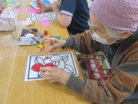 こんにちは、デイサービスです。今日はツバキの下絵を使ったちぎり絵教室を行いました。折り紙を細かくちぎって糊で貼りつけていくだけの簡単な作業ですが、手先の運動にもなり、色の組み合わせやバランスを考えながら紙を貼りつけていく作業の為、脳の刺激にもなります。折り紙のちぎり方や配色にご利用者様それぞれの個性が出ています(*^_^*)黙々と作業を続ける方、隣席の方とおしゃべりしながら取り組まれる方等、様々です。1時間では完成にならず、続きはお昼休み等に行っていきます!