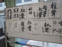 今日は書道教室を行いました。秋にちなんだ「紅葉」「椎茸」「秋晴」「味覚の秋」など様々な文字をお手本を見ながら書いていきます。とても上手な利用者様は行書体に挑戦され、周りからはすごいねと声をかけられていました。