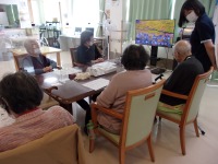 今日は昭和回想法レクを行いました。昭和30~50年頃流行した「アンコ椿は恋の花」を歌った歌手、ローファーの変わった履き方はどんなものだったか、沖縄県出身の男女5人歌謡グループの名称など様々な問題に頭を悩ませながら取り組まれていました。問題ごとにご利用者様自身の思い出も話されながら楽しまれていました(^u^)