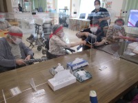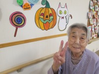 デイサービスの方々が作ったリースの間に飾ると壁面がパッと明るくなり、とっても楽しそうな空間となりました。