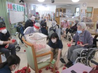 こんにちは、デイサービスです。今日も敷島デイサービス秋の大運動会を行いました。競技種目は昨日と同じ、輪つなぎリレー、紅白玉入れ、パン食い競争です(*^_^*)紅白チーム対抗戦となっていますが、パン食い競争だけ個人戦です。昨日も参加してくださったご利用者様は競技種目のコツがわかっているので同じチームの方にアドバイスしてくださったり、チーム関係なくお互いを応援し合ったりと今日も楽しく、ケガなく、無事に運動会を終えることができました♪