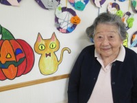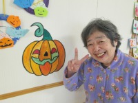 今日は午後からのワークショップで、ハロウィンの大きな塗り絵を完成させました。