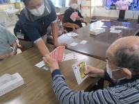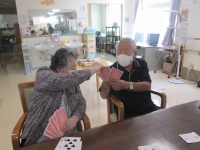 こんにちは、デイサービスです。今日はトランプやカルタを使ったカードゲームレクでした。トランプはご利用者様に大人気のババ抜きをしていただきました。皆さんとても正直なので、どなたがババを持ているのかすぐにわかってしまうという毎度恒例の微笑ましい場面はもちろんありました(*^_^*)上毛カルタでは県内の有名なものがたくさん登場することから、絵札を取るごとに会話が弾んでいらっしゃいました♪「トランプもカルタも大勢でやると盛り上がるね」と喜んでいただけたご様子です。