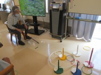 こんにちは、デイサービスです。本日は輪投げゲームを行いました。5点~100点と5本の的に向かって、ご利用者の皆様一生懸命投げてくださり、最低でも80点の得点をとることが出来ていました!最後に高得点を狙える大きな輪っかを投げますが、意外と重たいので苦戦される方もいました。最高得点260点と上手なご利用者様もいらっしゃいました。
