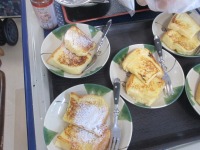 仕上げに粉糖とメープルをお好みでかけて頂き美味しいフレンチトーストの出来あがりです。