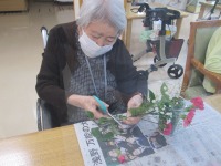 普段あまり生花に触れる機会がないため、楽しみにされている方もたくさんいらっしゃいます。本日は男性利用者様がいつもより多い日でしたが皆様楽しまれている様子で「持って帰って妻にあげようか」なんて素敵なお声も聞かれました。(*^_^*)