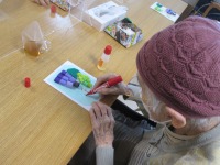 はじめは「難しい」「やったことない」と後ろ向きな方も、筆を持ったらうって変わってすらすらと色を塗っておられました。皆様それぞれ思い思いの菊の花を仕上げて下さっています。