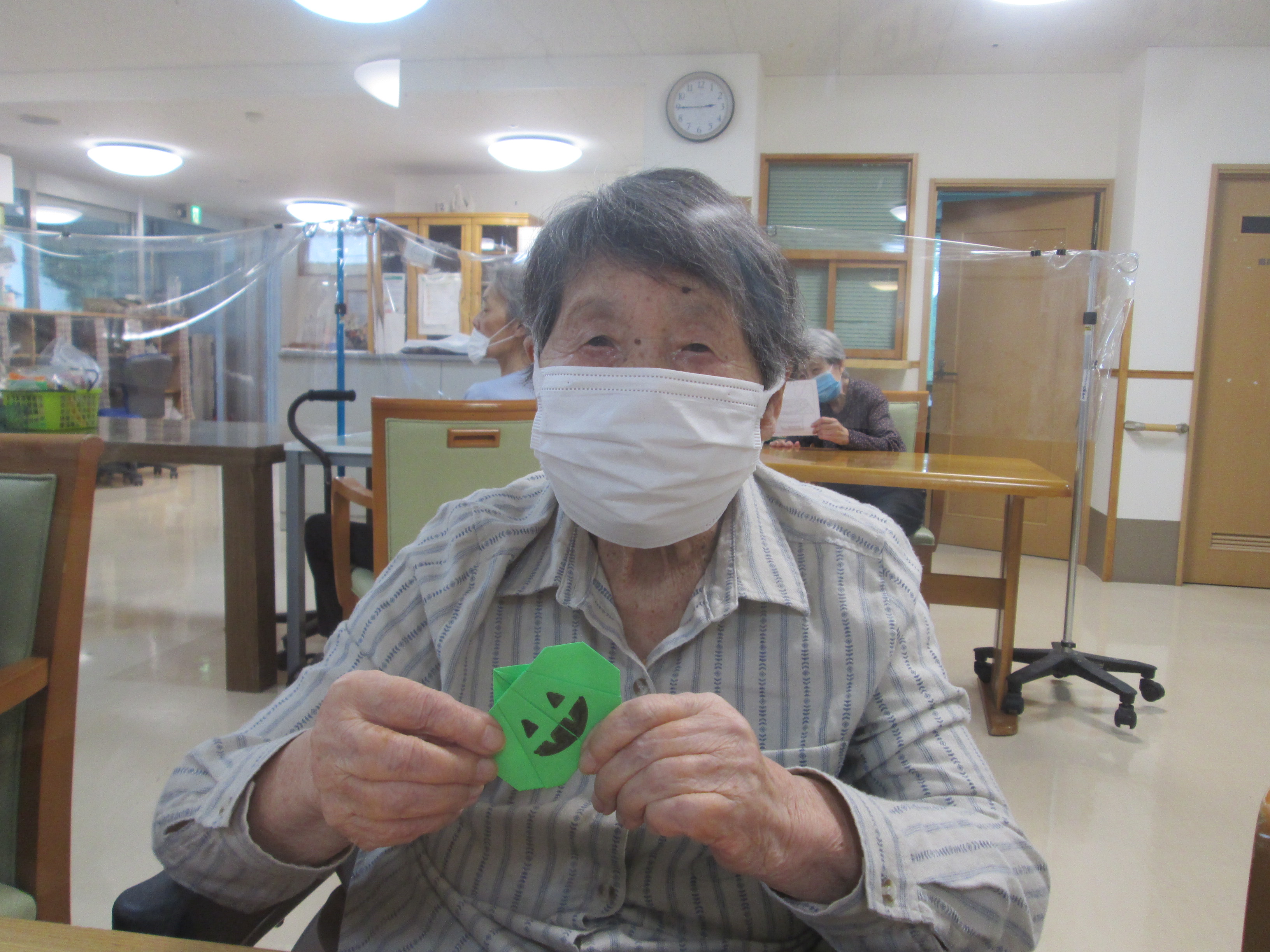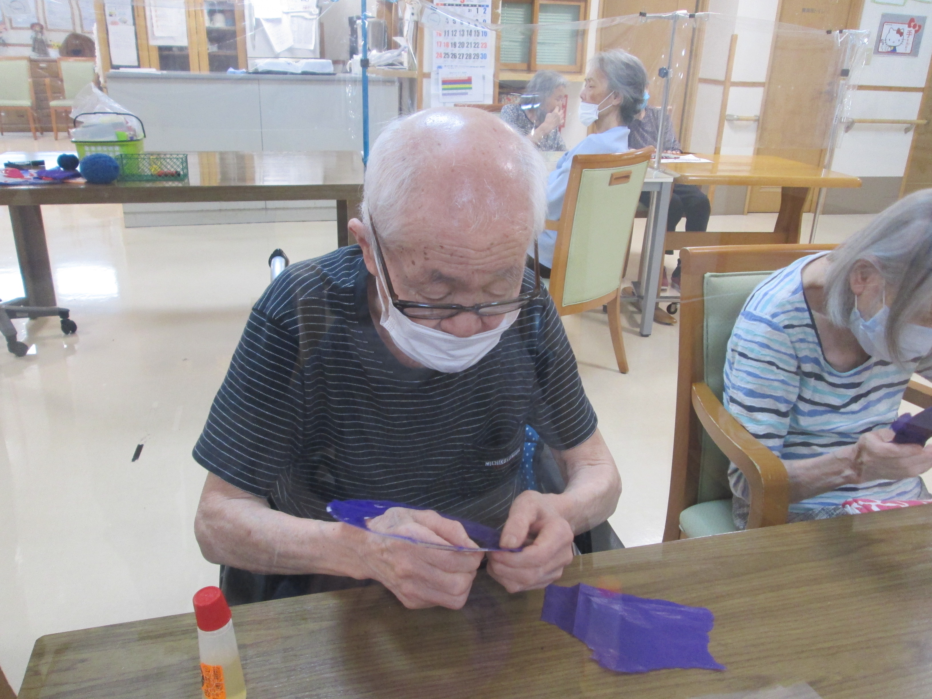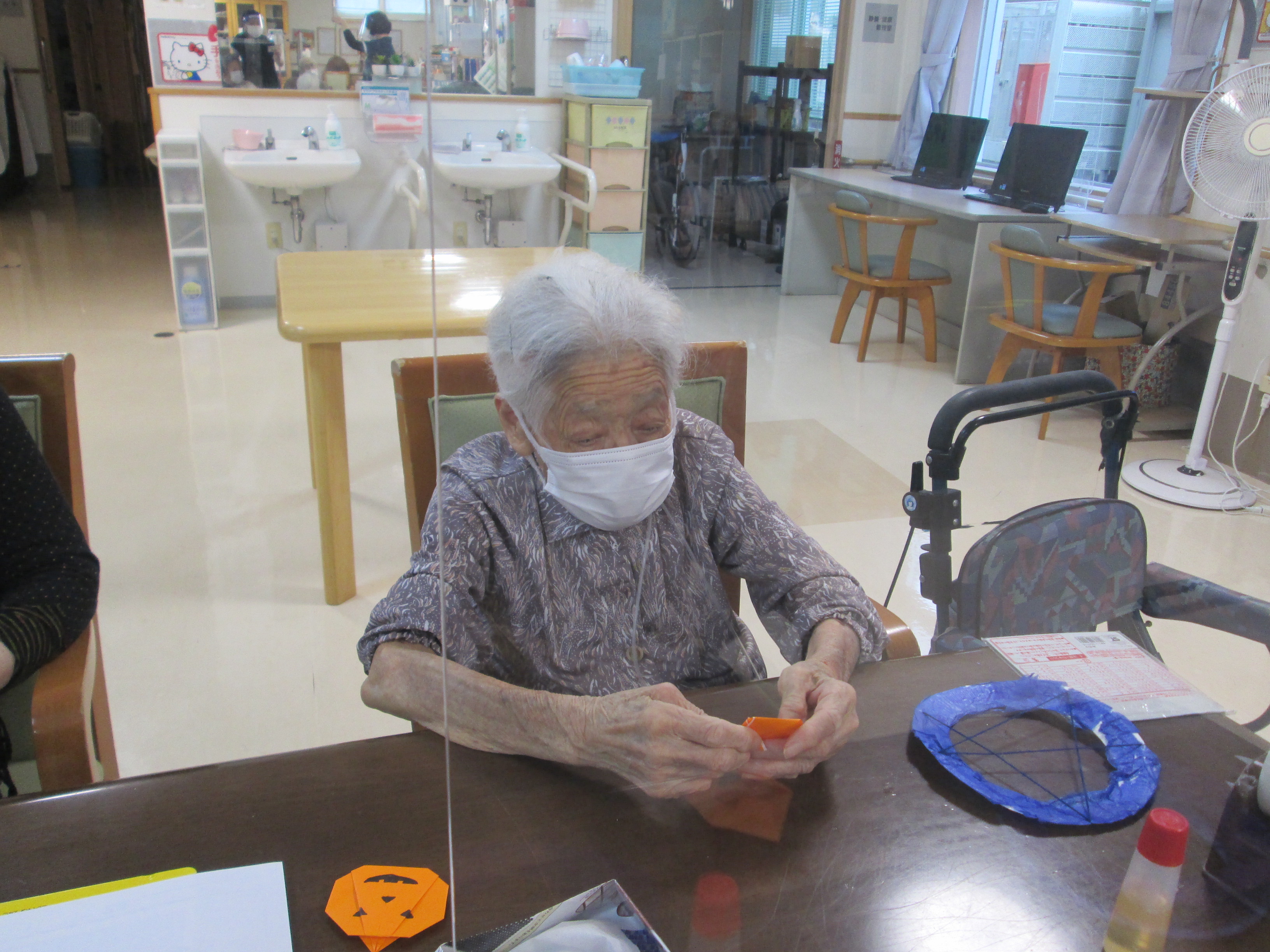 今日のレクリエーションは、一足早く10月のハロウィンに向けてリール作りを行いました。