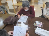 こんにちは、デイサービスです。今日は魚釣りゲームを行いました。磁石の付いた魚介類のイラストを釣竿で釣っていただきました。うなぎ、ヒラメ、マンボウ、うに、イカ、エビ等様々です。イラストの裏には点数が書いてあり、最後に合計得点を競います。ご利用者ご自身に点数の計算をしていただくので楽しいゲームだけではなく、きちんと脳トレにもなっています(^_^)デイルームに楽しそうな笑い声があふれ、有意義な時間が過ごせました!