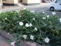 玄関脇のエンジェルストランペット。