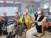 こんにちは、デイサービスです。今日は音楽レクということで、懐かしの名曲の歌詞を配布して皆さんに歌ってもらいました。歌うことは身体機能、精神機能、認知機能など、どの機能にも効果がありそうです♪今回は歌謡曲に限定して「旅の夜風」「お座敷小唄」「四季の歌」「湖畔の宿」等、ご利用者様から人気のある10曲を選んでみました。皆さん歌詞カードをみながらしっかりと声を出してくださっていましたが、机でリズムをとる方もいらっしゃったりとそれぞれお好きなスタイルで音楽レクを楽しんでくださっていました(*^_^*)