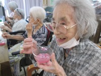 こんにちは、デイサービスです。敷島デイでは昨日から夏祭りを行っています。今日も職員によるだんべえ踊りを見ていただき、炭坑節や東京音頭はご利用者様と一緒に踊ってみました(*^_^*)盆踊りの後はスイカボール投げゲームを行いました。成績上位の方には豪華景品がつきます♪おやつにかき氷とお好み焼きを召し上がっていただき、夏祭り気分をあじわっていただきました!