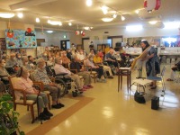 様々なゲームやスイカ割、また、午後からはご家族のボランティアによるハープ演奏に耳を傾け、懐かしい昭和の歌謡曲を一緒に口ずさみました。