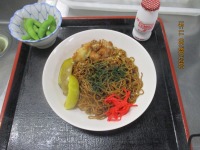 また、お体の状態などで参加できなかった入居者様へは、昼食に屋台風の焼きそば、唐揚げ、じゃがバタなどを提供させていただき、1日楽しいお祭り気分を味わいました。