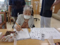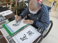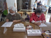 こんにちは、デイサービスです。今日は書道教室ということで、「初夏」「夏至」「そうめん」「尾瀬」「書道」等のお手本を用意して、ご利用者様にお好きなものを選んで取り組んでいただきました。敷島デイは書道経験者の方もたくさんいらっしゃるので、より良い作品に仕上げようと熱心です。ご利用者様同士で褒め合ったり、アドバイスし合ったりと微笑ましい場面もたくさんありました(*^_^*)完成作品をすぐに家へ持ち帰りたいところをご利用者様にお願いして、デイルームの書道コーナーにしばらくの間、飾らせてもらっています。