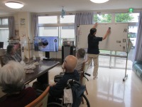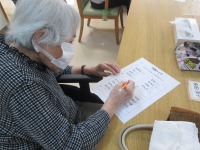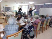 こんにちは、デイサービスです。今日はご利用者様から大人気の脳トレを行いました。脳トレプリントに取り組んでいただく前に「りんご、バナナ、みかん」の3種類のフルーツを覚えておいてもらい、脳トレプリント終了後に3種類のフルーツの名前は何だったか答えてもらいました。結果は・・・皆様しっかりと3種類のフルーツ名を答えてくださいました(^O^)「もっと難しい問題出してもいいよ。」と話される方もたくさんいらっしゃるので、とても頼もしい敷島デイサービスの皆様です(*^_^*)