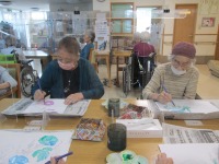 今日は、朝顔の水彩画を行いました。絵具か色鉛筆でお好きな色を選んでいただき取り組まれました。「朝顔は夏を感じるよ」「小学校の夏休みに朝顔を育てた事を思い出すよ」と色々な感想を聞くことができました。青やピンクや紫色の色とりどりの朝顔が完成し鑑賞会を楽しみました(^O^)