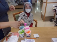 こんにちは、デイサービスです。今日は「いつ、どこで、だれが、何をした」ゲームを行いました。四色のメモ用紙を用意して、色別にいつ、どこで、誰が、何をしたをご利用者様に記入してもらい、記入後にカップに入れてシャッフルします。シャッフル後にお一人づつメモ用紙を引いてもらい文章を完成させます。「4月1日に家の中で私がダンスした。」という普通にありえそうな文章や、「昨日、東尋坊で友だちが変顔をした。」などという少し笑ってしまうような文章が完成しました。笑い声あふれる楽しいレク時間となりました(^_^)