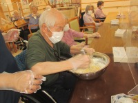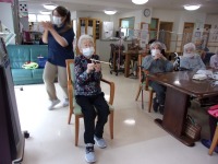 今日は、射的ゲームを行いました!職員お手製のゴム鉄砲と紙コップを用意しました。点数の書かれた紙コップを目がけ的を絞りゴムを放ちます。「当たると気持ちいいね~」「射的は久しぶりで楽しいよ」と皆様楽しそうな笑顔で取り組まれました(^O^)